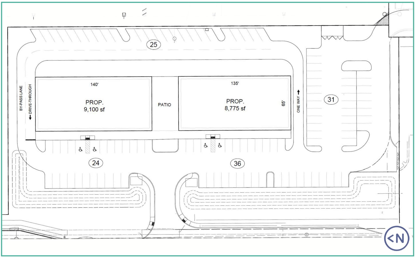 - New construction retail center with drive thru capability